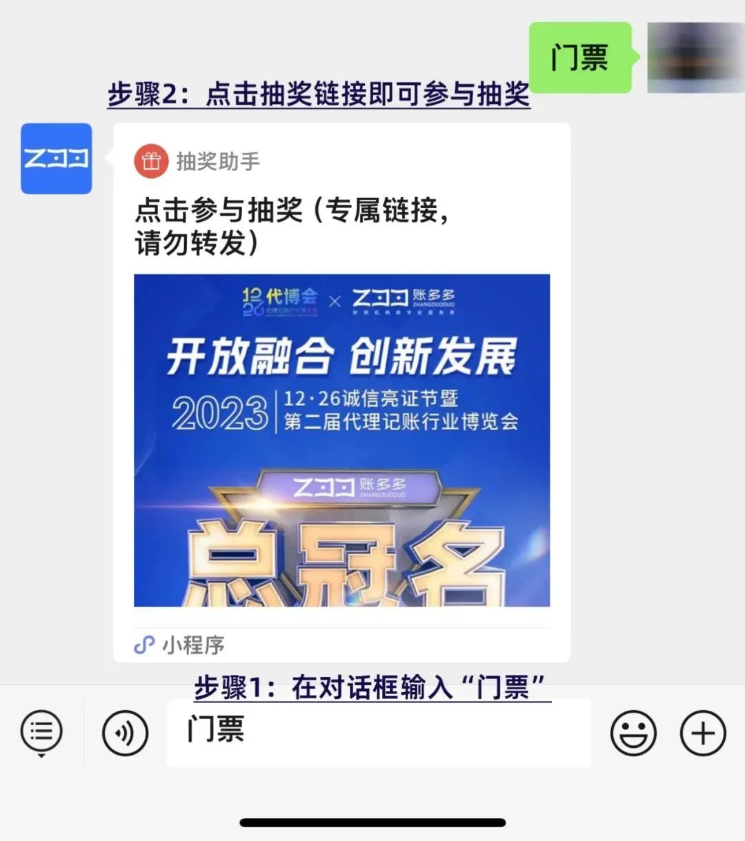 即日起至11月17日16:00,进入“账多多猩球”微信公众号,发送关键词【门票】,进入抽奖链接,即可参与代博会门票抽奖活动。