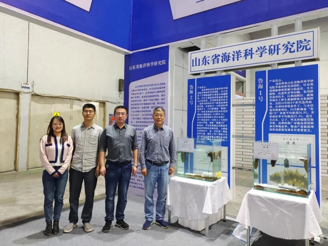 在展会期间举办的中国海参产业主题展上,我院李成林研究员带领刺参研究团队选育的刺参“鲁海1号”“鲁海2号” 2个刺参新品种一齐亮相展台。刺参“鲁海1号”是首个以我国本土不同地理野生群体为亲本选育的新品种,生长速度和成活率分别提高24.8%、23.5%,对重点保护、充分开发利用本土种质资源具有重要意义;刺参“鲁海2号”是我国首个耐低盐刺参新品种,适养盐度和水温分别为20~34和2~30℃,大幅提升了原产区养殖单产并进一步拓宽了刺参适养区域。目前经全国水产原种和良种审定委员会审定通过的刺参新品种共有8个,刺参新品种的培育及推广对提高我国刺参良种覆盖率,推动产业提质增效和高质量发展具有重要意义。