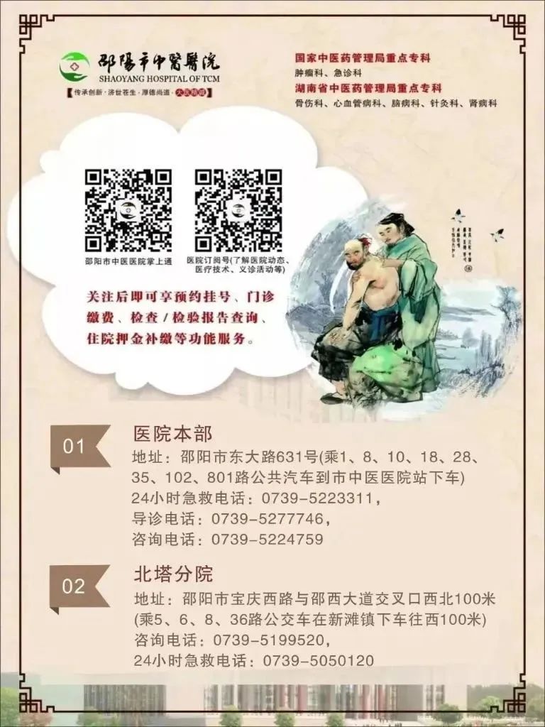 近年来,邵阳市中医医院充分利用省市大力发展中医药事业的政策机遇,充分发挥中医药在防病治病和养生保健中的积极作用,努力促进邵阳中医药文化传播和中医药事业发展,开展中医药领域的交流合作,取得了积极成果。邵阳市中医医院作为我市中医事业的龙头单位,将继续发挥三甲中医医院的优势,将传统中医药文化与现代科学相结合,实现中西医相互补充、协调发展,为群众提供更加优质的健康服务,更好地推动中医药事业高质量发展。