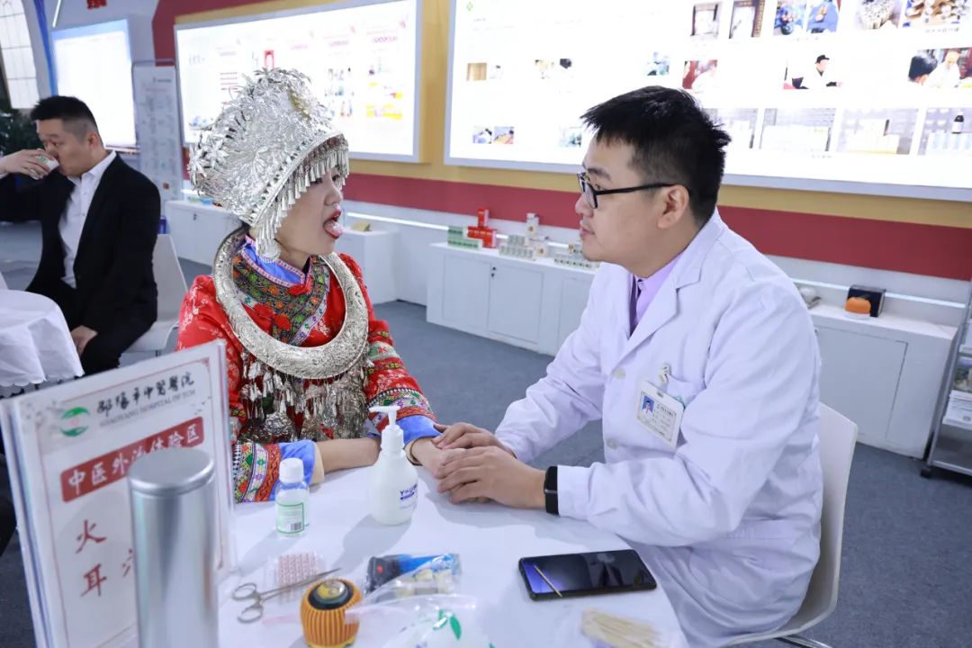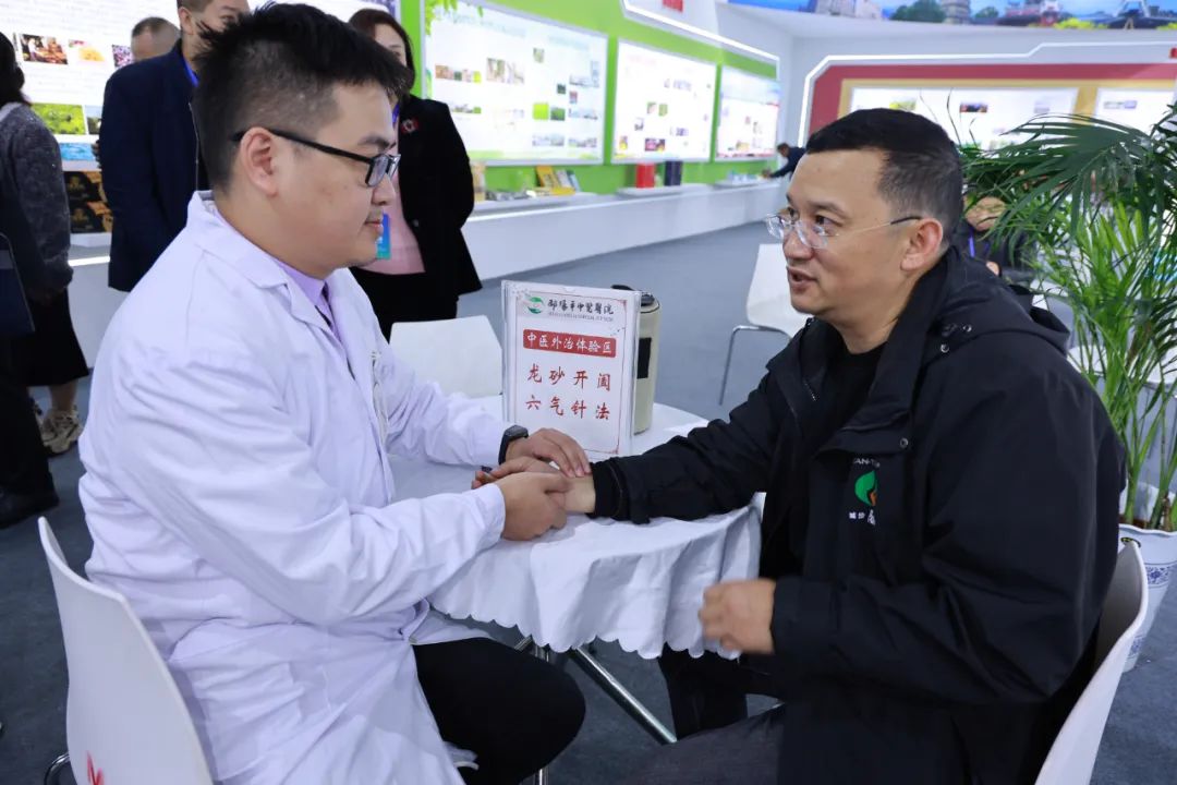 展会现场,我院设计了医院成果展示区、中医专家诊疗区、中医技术体验区、中药制剂和膏方展示区、中医茶饮和香囊体验区五个展区,举全院之力,在弘扬中医国粹的同时,充分展示我院的中医药特色亮点,吸引了众多专家学者及与会代表的广泛关注与咨询交流。