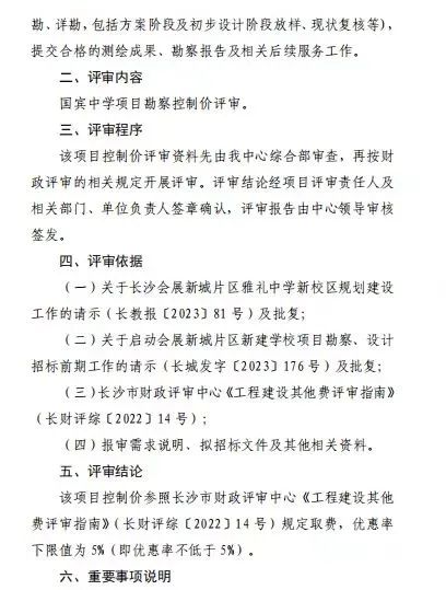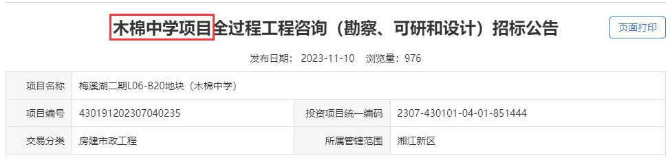 11月7日,长沙公共资源交易电子服务平台发布“国宾中学项目勘察招标公告”,招标条件里明确指出,该学校为“雅礼中学新校区”,算是正式官宣了。
