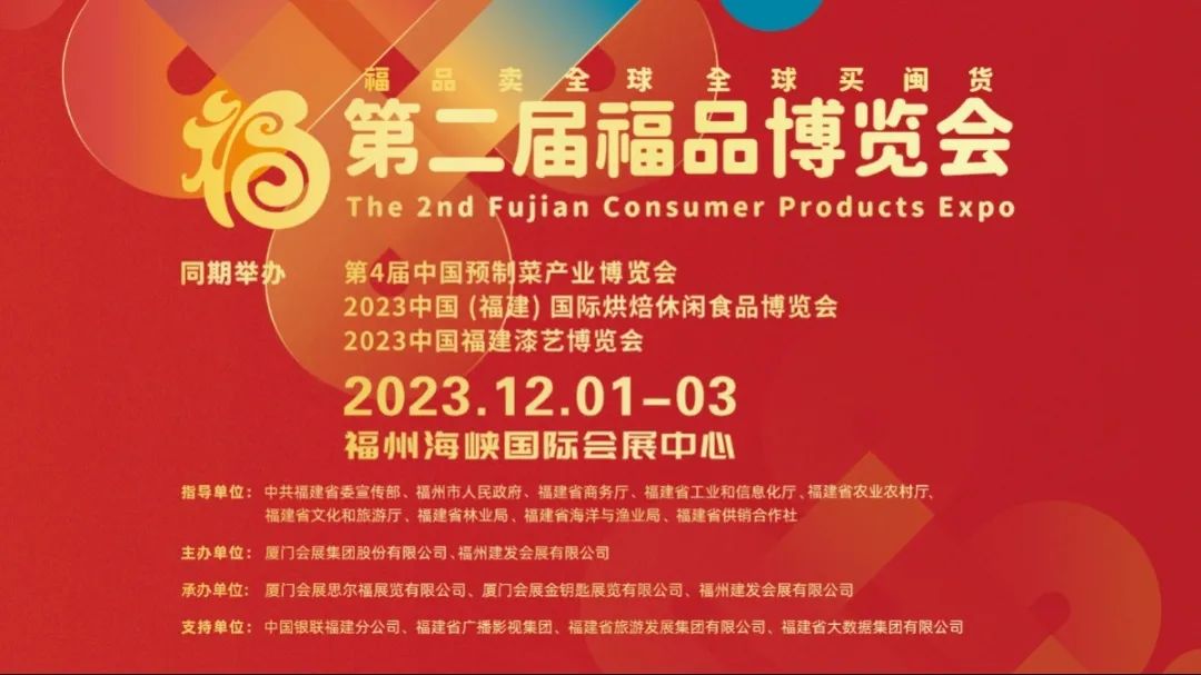 2023年12月1日-3日,第4届中国预制菜产业博览会将在福州海峡国际会展中心盛大举行!本届展会较之往届客商规格更高、专业性更强、龙头企业大咖更多!展会规模达30000平方米,设置国际标准展位1300个,吸引国内外预制菜上下游优质企业500多家,涵盖综合预制菜品牌、肉类预制菜、水产品预制菜、蔬果净菜、复合调味料及冷链配套包装等展品范畴,打造“中国预制菜全产业链一站式宣传、展示、交流、交易平台”!