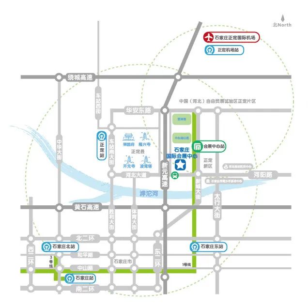 正定火车站->车站北大街->汽车站->车站南大街->河阳路->石家庄国际会展中心