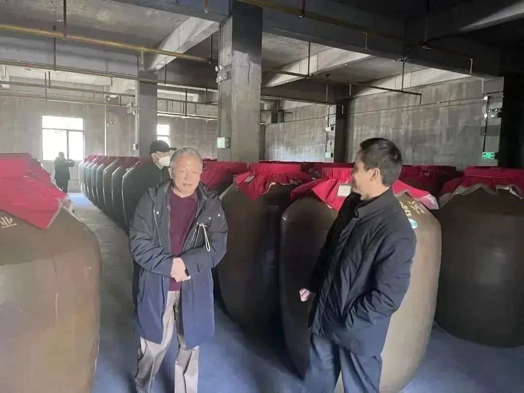 温老师一行在酒业公司技术总工田龙新的陪同下参观了生产车间、陶坛储酒库、二期建筑工地等地,了解公司的历史沿革、企业文化和生产工艺,用他们的镜头和笔墨记录了尧治河酒的传统古法酿造。