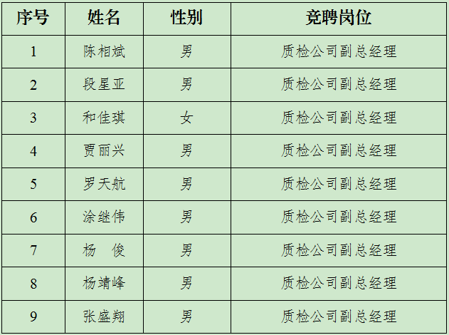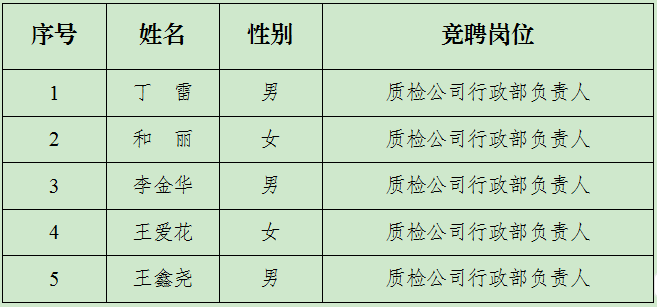 (二)质检公司行政部负责人竞聘名单