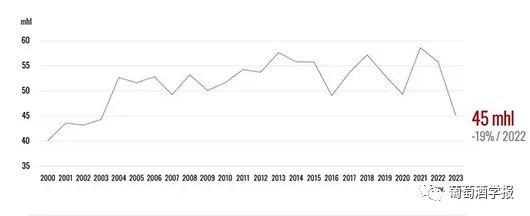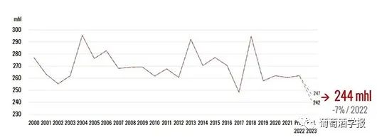 【数据】OIV数据:2023全球葡萄酒产量创60年来最低水平