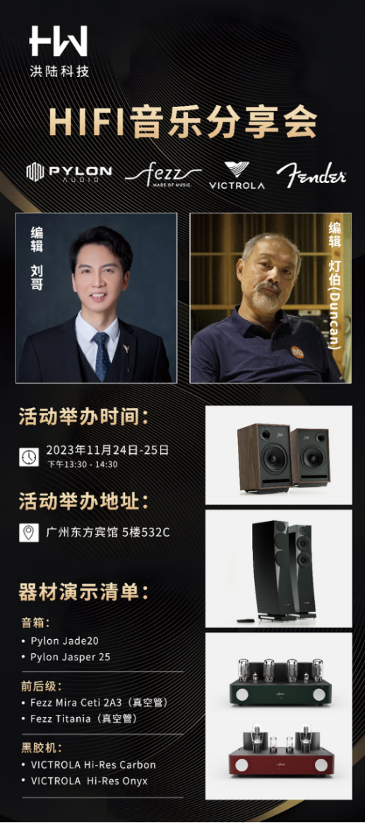 2023广州国际音响唱片冬季特展将于11月24-26日,在广州东方宾馆、中国大酒店隆重举办!此次行业盛宴,洪陆科技将携众多代理品牌的热门产品与广大影音爱好者相见,邀观众现场感受极致HIFI的无穷魅力。