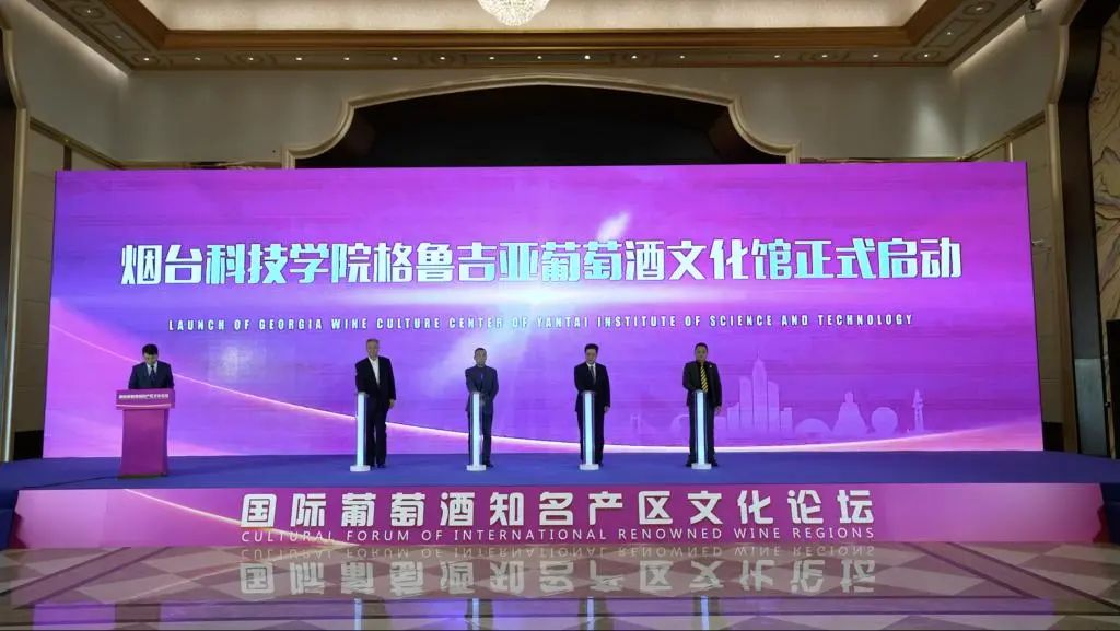 同时,烟台科技学院格鲁吉亚葡萄酒文化馆、《中国葡萄与葡萄酒诗词》翻译编辑工程也正式启动。其中,烟台科技学院格鲁吉亚葡萄酒文化馆,占地面积269平方米,将集中展示格鲁吉亚葡萄酒发展历史、格鲁吉亚西亚文化特色、陶缶实物与葡萄酒酿造工艺、格鲁吉亚葡萄酒文化体验等。烟台科技学院借“一带一路”倡议的东风,搭建格鲁吉亚葡萄酒文化馆,旨在推动中国和格鲁吉亚在葡萄酒文化、旅游交流、经贸投资等领域深化合作,是搭建中国与格鲁吉亚葡萄酒文化交流的重要载体和平台;由国际葡萄酒文化研究中心启动的《中国葡萄与葡萄酒诗词》翻译编辑工程,旨在从文化的视角,让世界更多热爱葡萄酒的人们,从珍珠般的中国葡萄酒诗词中体味古老中国博大精深的酒文化,在绵绵诗意中舒缓心灵,放飞梦想,珍惜当下,憧憬未来,携手共建“天地人和、各美其美、美美与共”的人类美好家园。