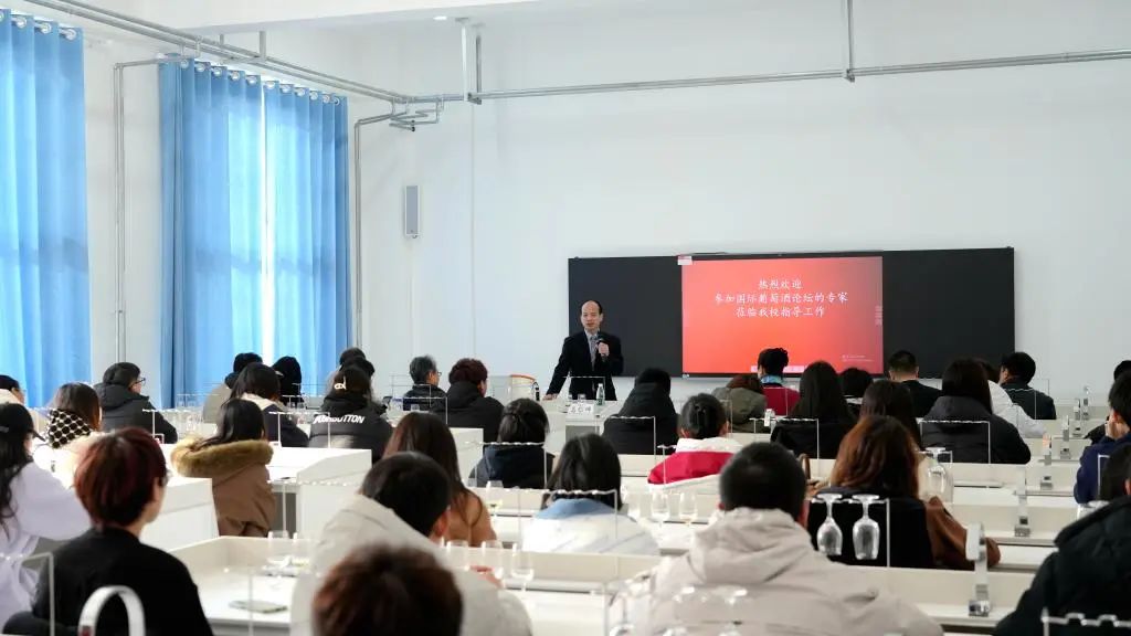11月14日,在校长马红坤、副校长苏东平陪同下,参加本次论坛的部分中外嘉宾、业内专家学者实地参观了烟台科技学院国际葡萄酒商学院(葡萄酒现代产业学院)。期间,马红坤向大家介绍了近年来学校坚持立足地方、服务地方、融入地方、发展地方,着力打造 “一园一馆一盟三基地”葡萄酒文化旅游产教融合生态圈的经验做法,并得到了中外嘉宾、业内专家学者的高度赞赏。