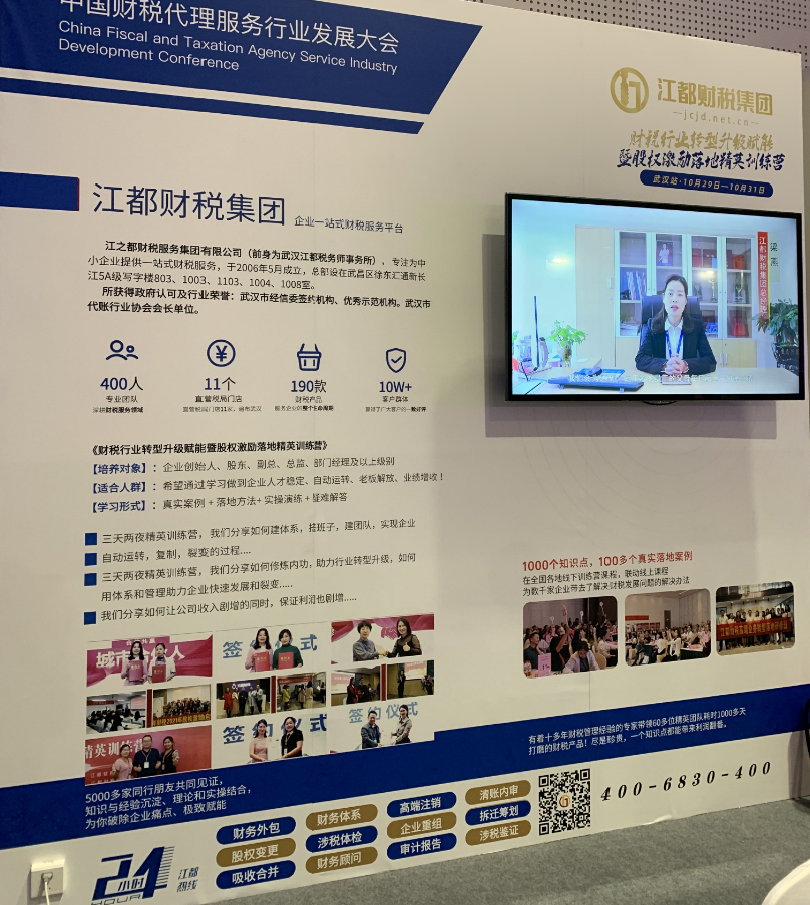 江之都财税集团作为本次参展单位和大会战略伙伴之一,受到了不少同行的关注,江之都财税集团A06展位迎来了络绎不绝的同行企业家们。