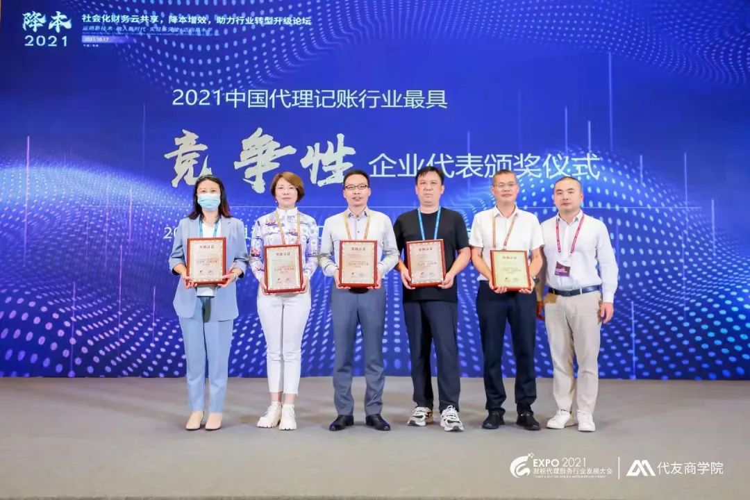 江之都财税集团荣获2021中国代理记账行业最具竞争性企业代表。