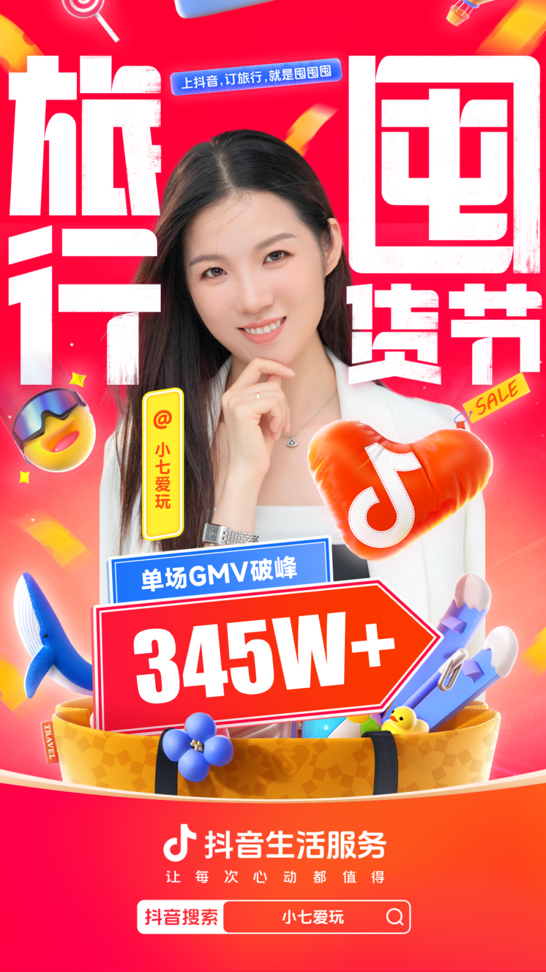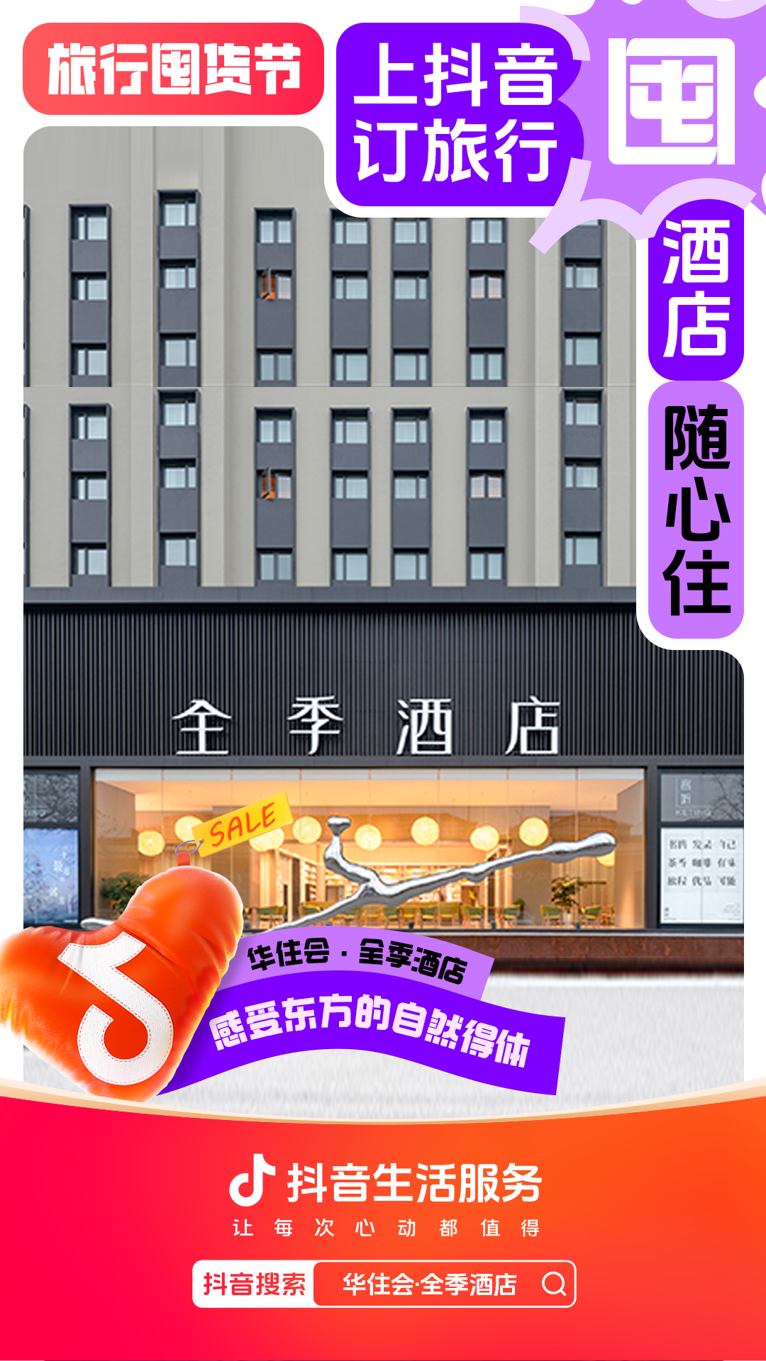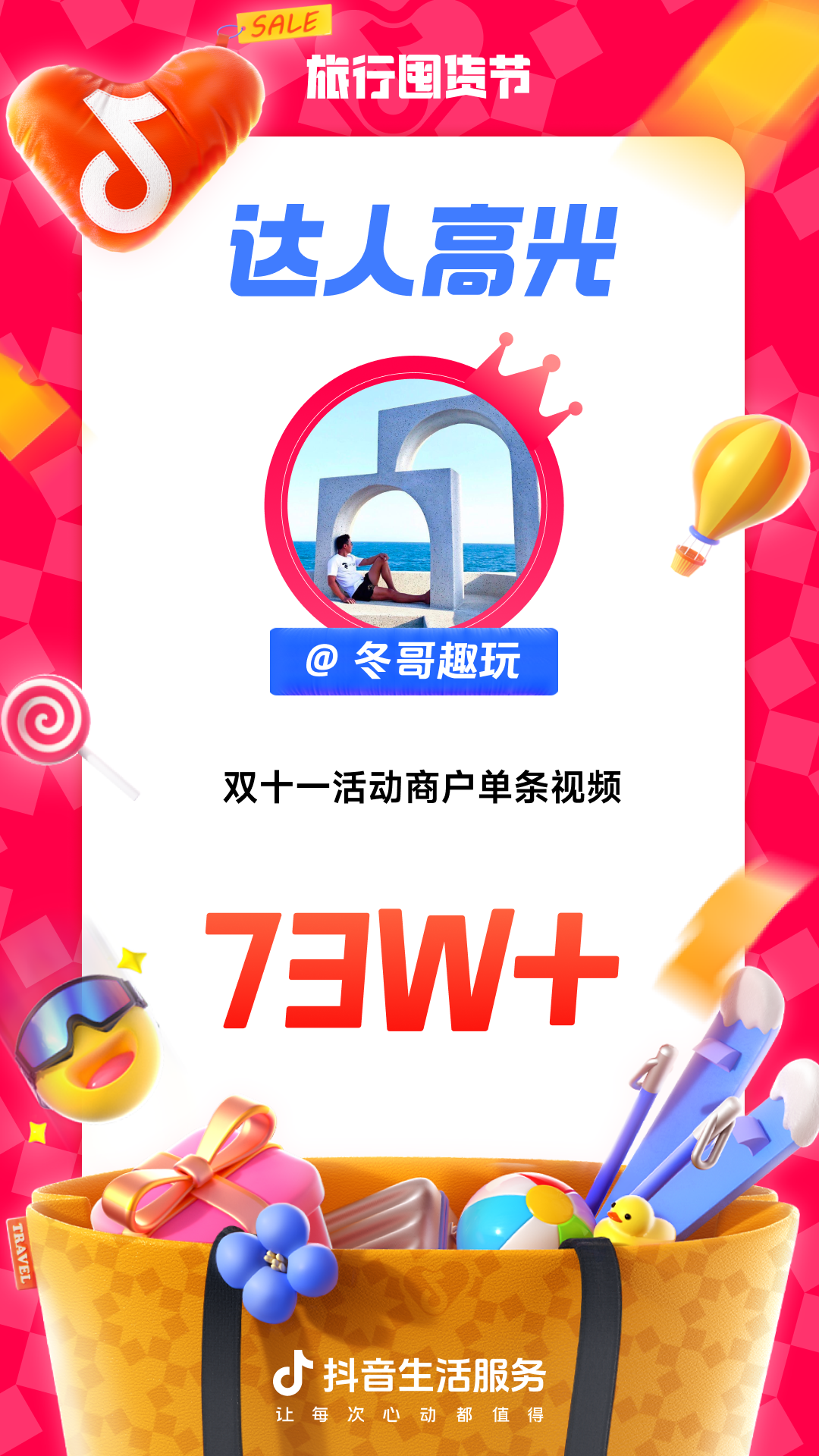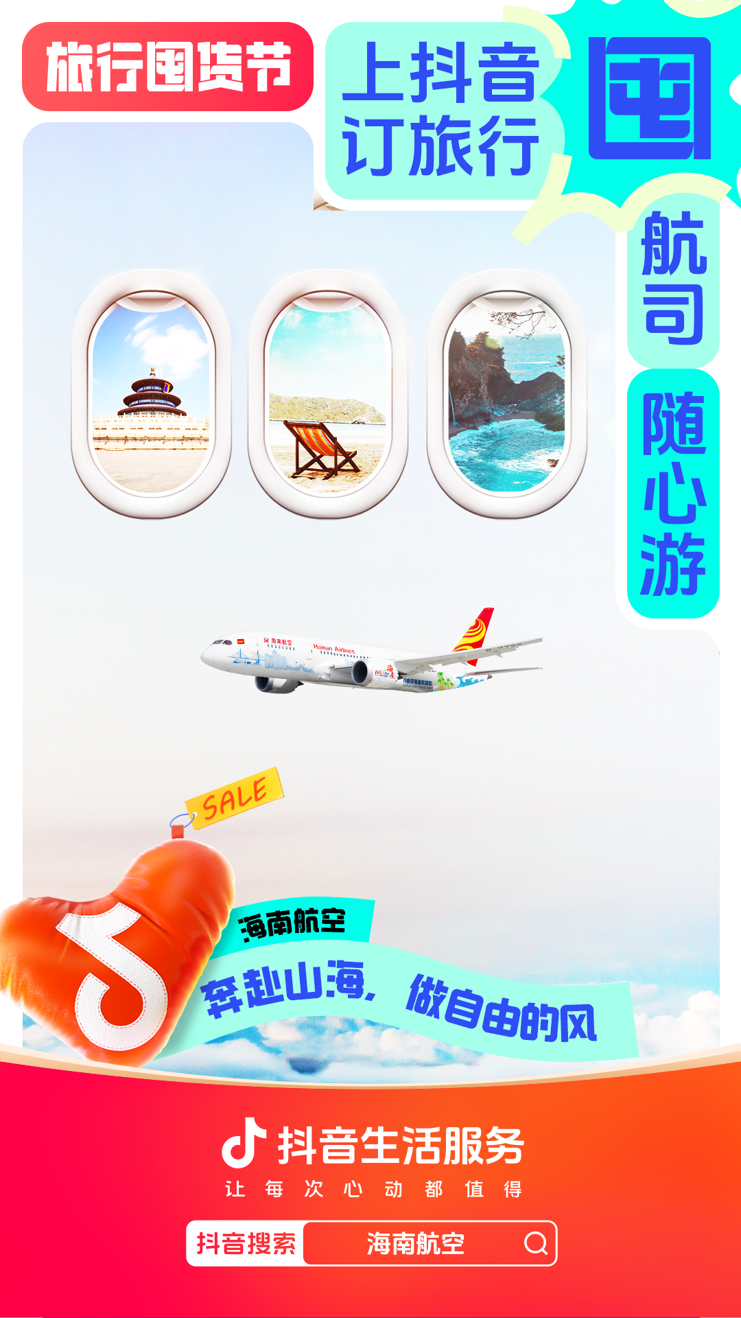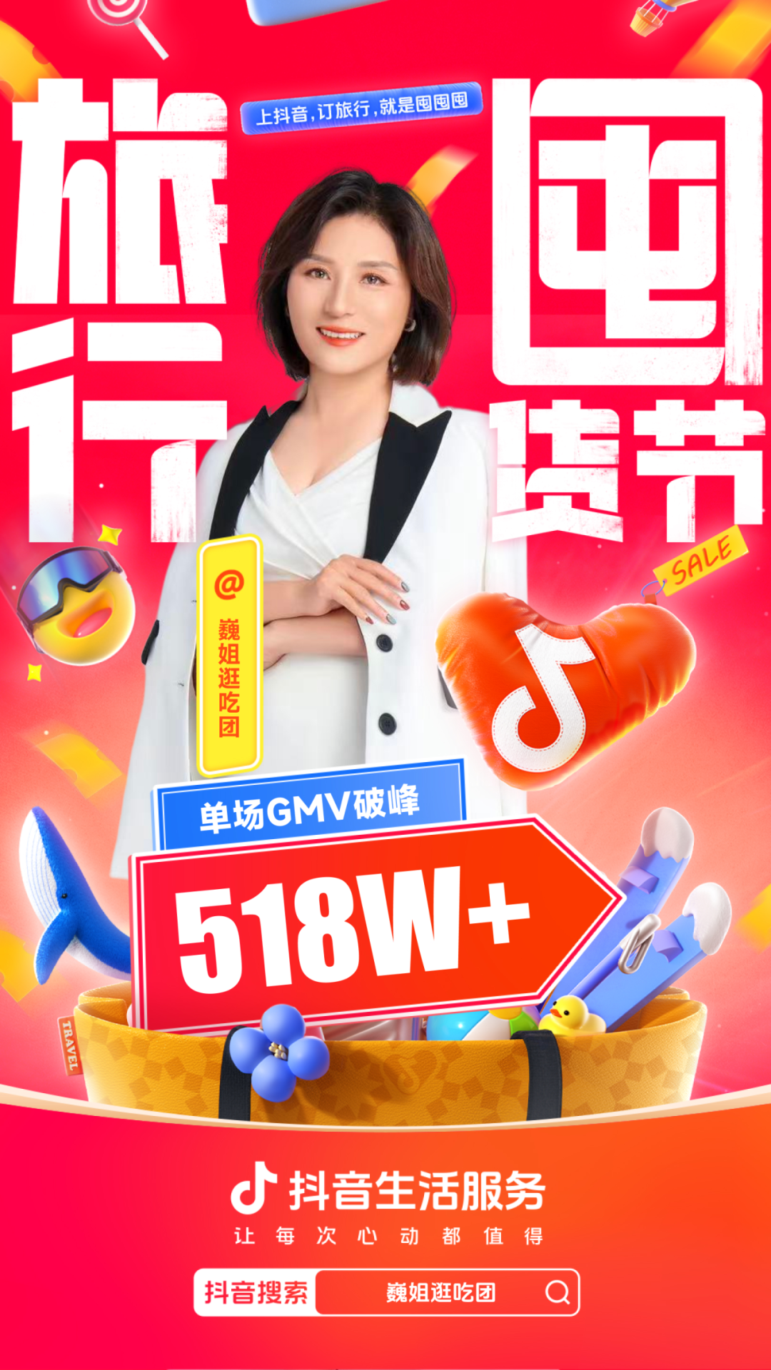 为进一步增强用户“上抖音,订旅行”的一站式订好吃喝玩乐认知,抖音生活服务整合直播间banner、频道页、金刚位等优质资源,给「旅行囤货节」全面造势,并配合活动氛围上线氛围物料,撬动更多旅行相关优质品牌重视淡季经营,同步提升抖音用户关注,并加强用户旅行淡季“囤货”的认知。