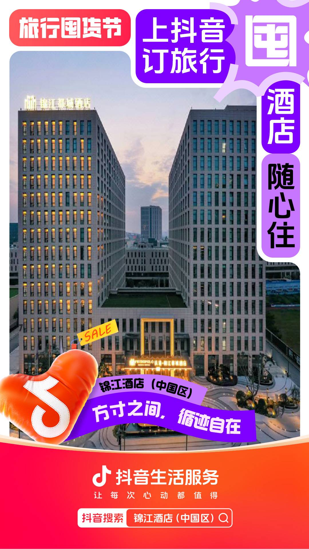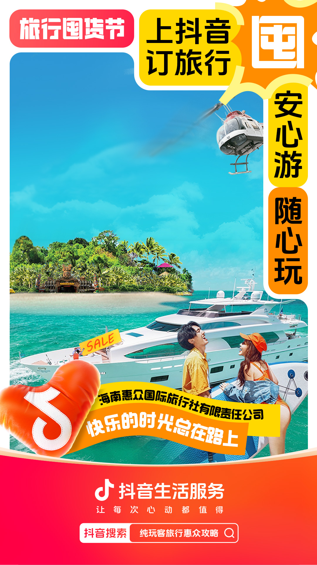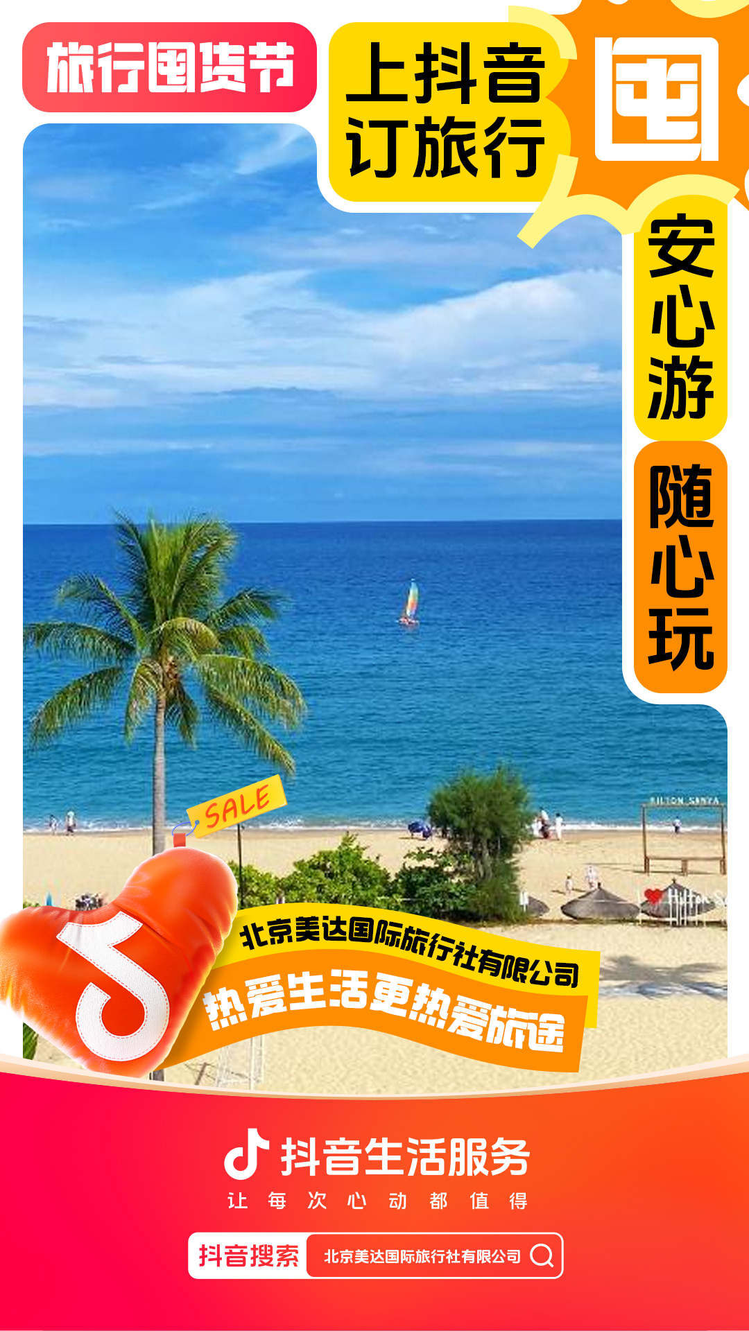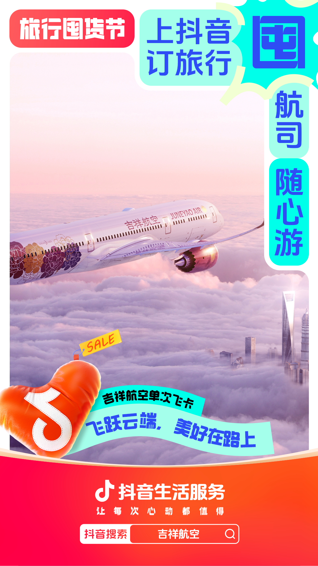 为进一步增强用户“上抖音,订旅行”的一站式订好吃喝玩乐认知,抖音生活服务整合直播间banner、频道页、金刚位等优质资源,给「旅行囤货节」全面造势,并配合活动氛围上线氛围物料,撬动更多旅行相关优质品牌重视淡季经营,同步提升抖音用户关注,并加强用户旅行淡季“囤货”的认知。