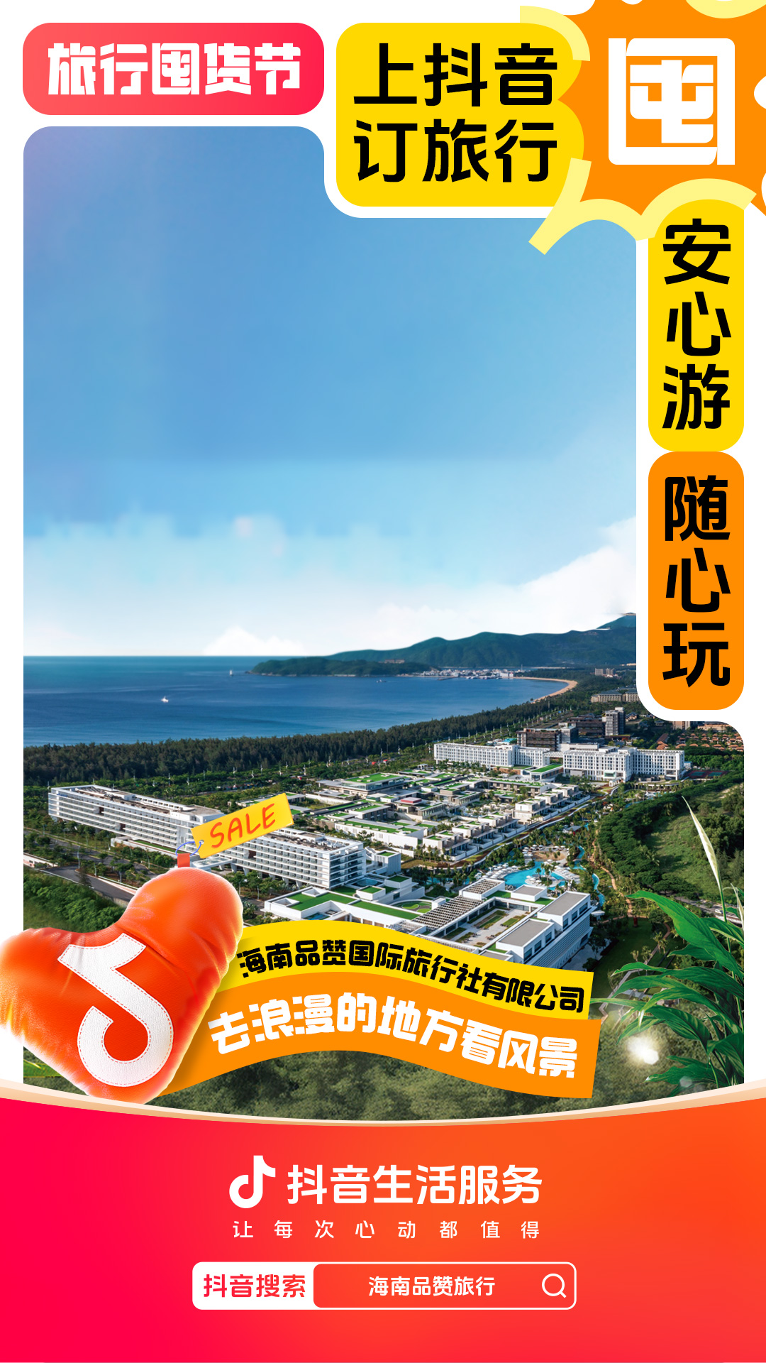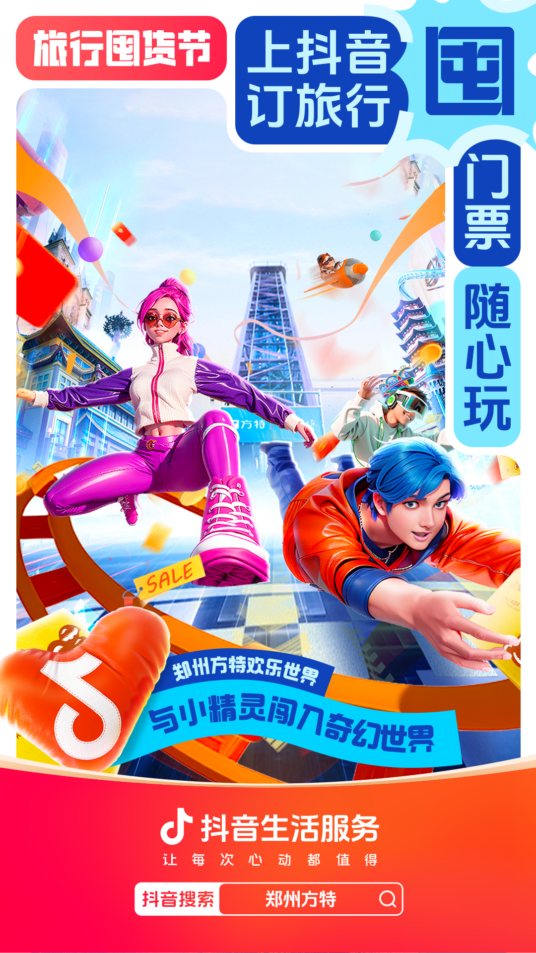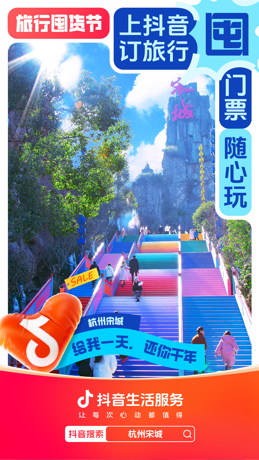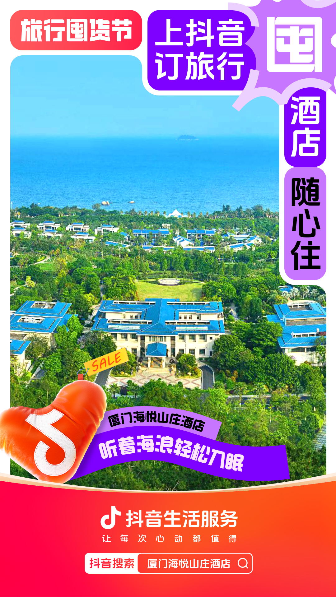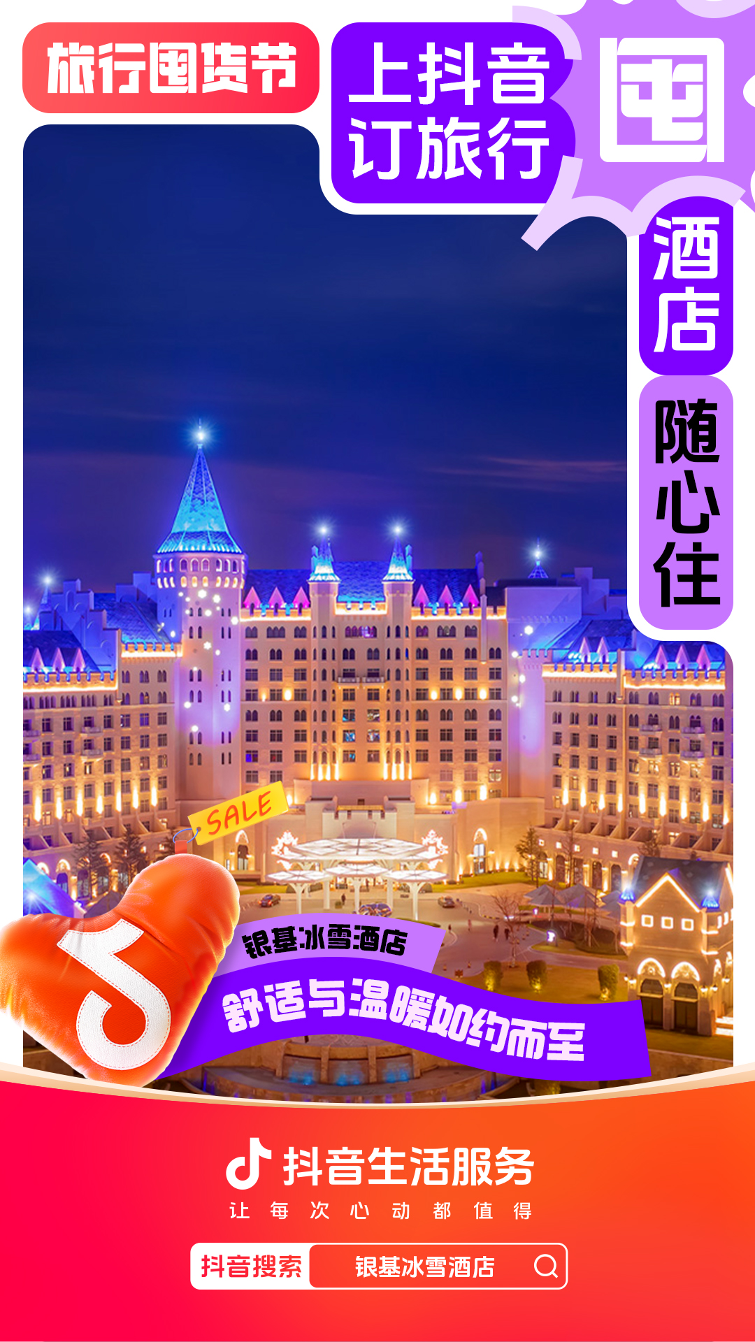 为进一步增强用户“上抖音,订旅行”的一站式订好吃喝玩乐认知,抖音生活服务整合直播间banner、频道页、金刚位等优质资源,给「旅行囤货节」全面造势,并配合活动氛围上线氛围物料,撬动更多旅行相关优质品牌重视淡季经营,同步提升抖音用户关注,并加强用户旅行淡季“囤货”的认知。