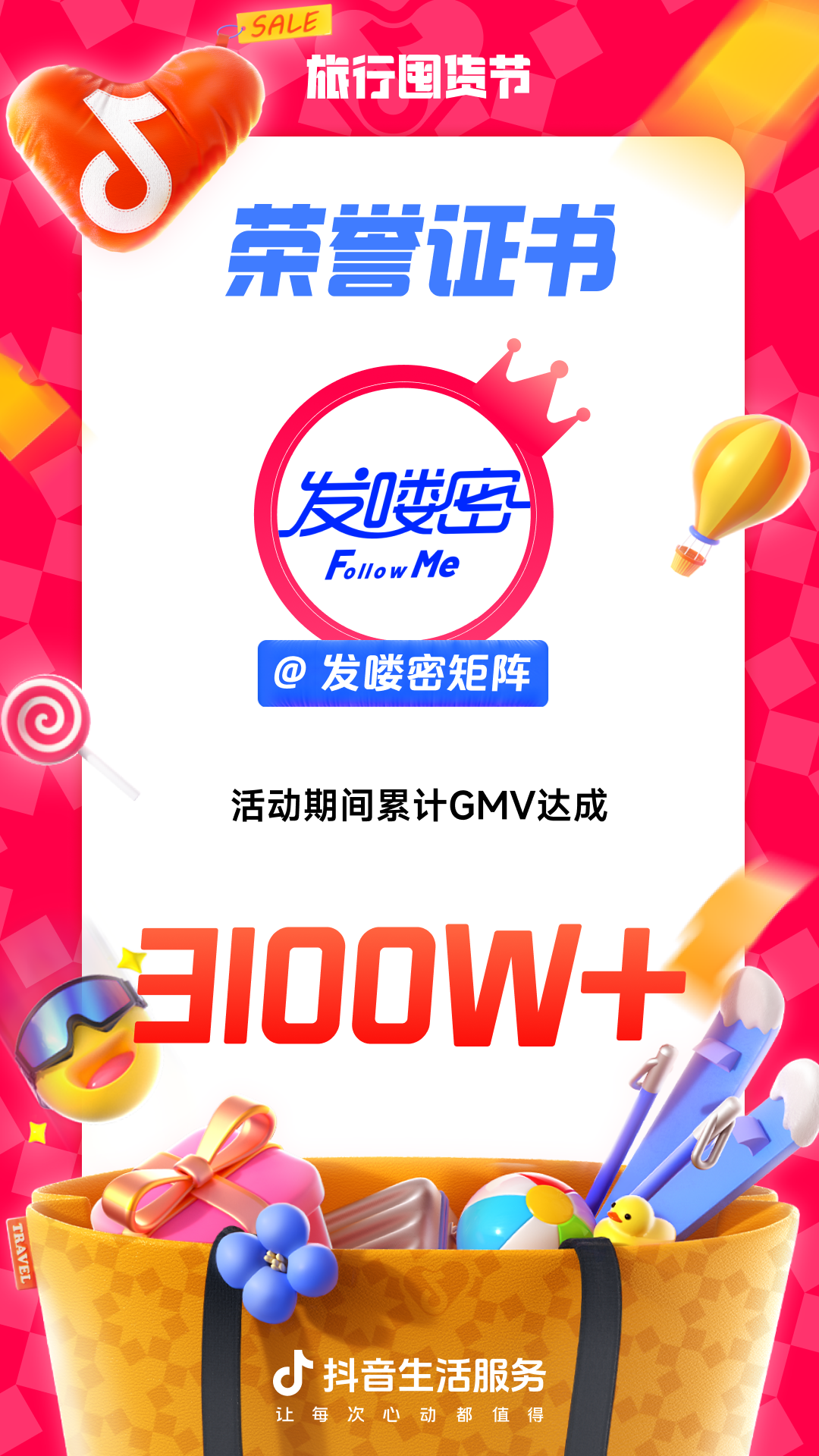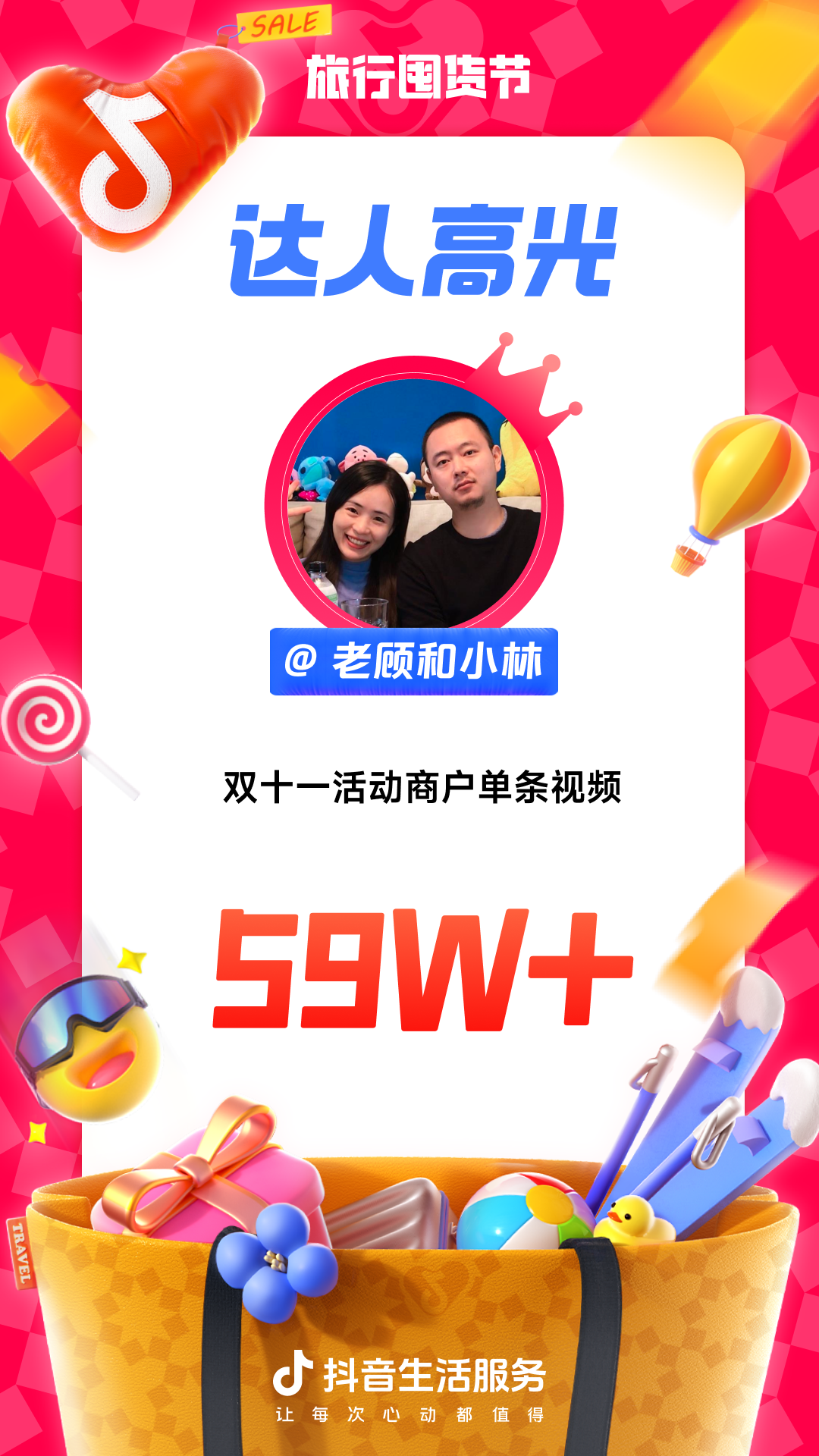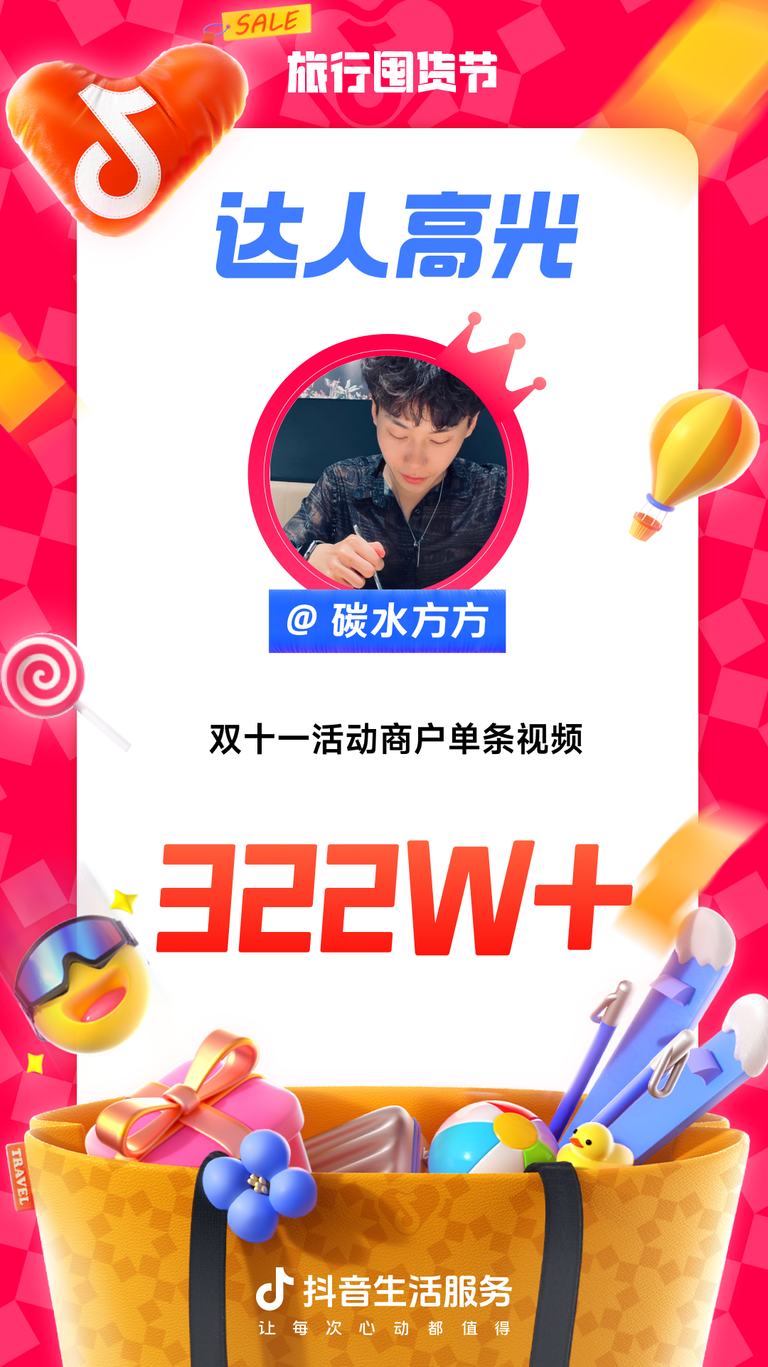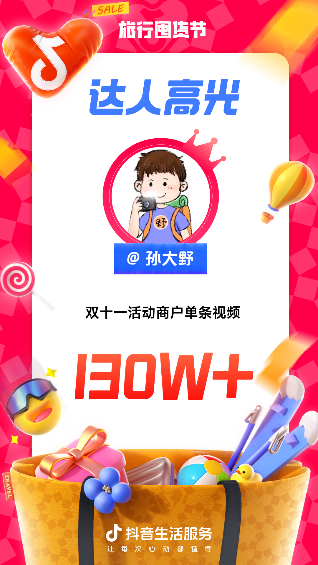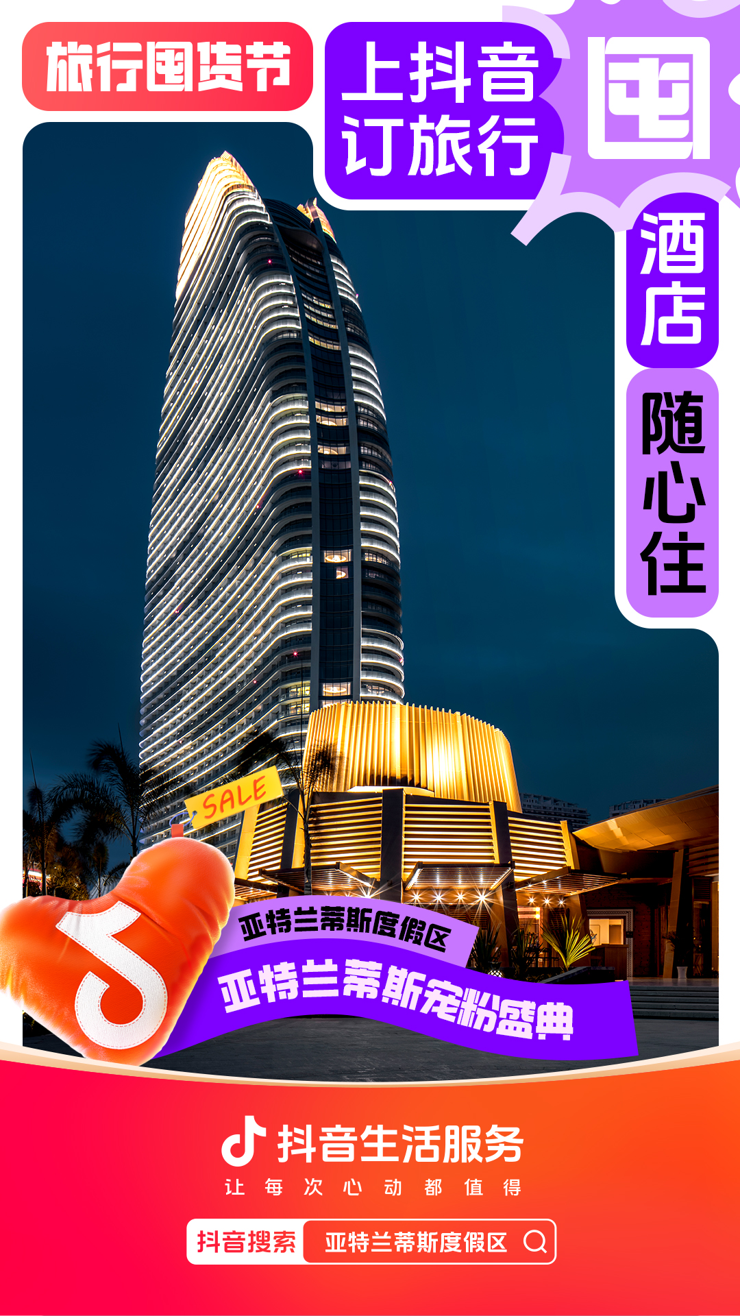 为进一步增强用户“上抖音,订旅行”的一站式订好吃喝玩乐认知,抖音生活服务整合直播间banner、频道页、金刚位等优质资源,给「旅行囤货节」全面造势,并配合活动氛围上线氛围物料,撬动更多旅行相关优质品牌重视淡季经营,同步提升抖音用户关注,并加强用户旅行淡季“囤货”的认知。