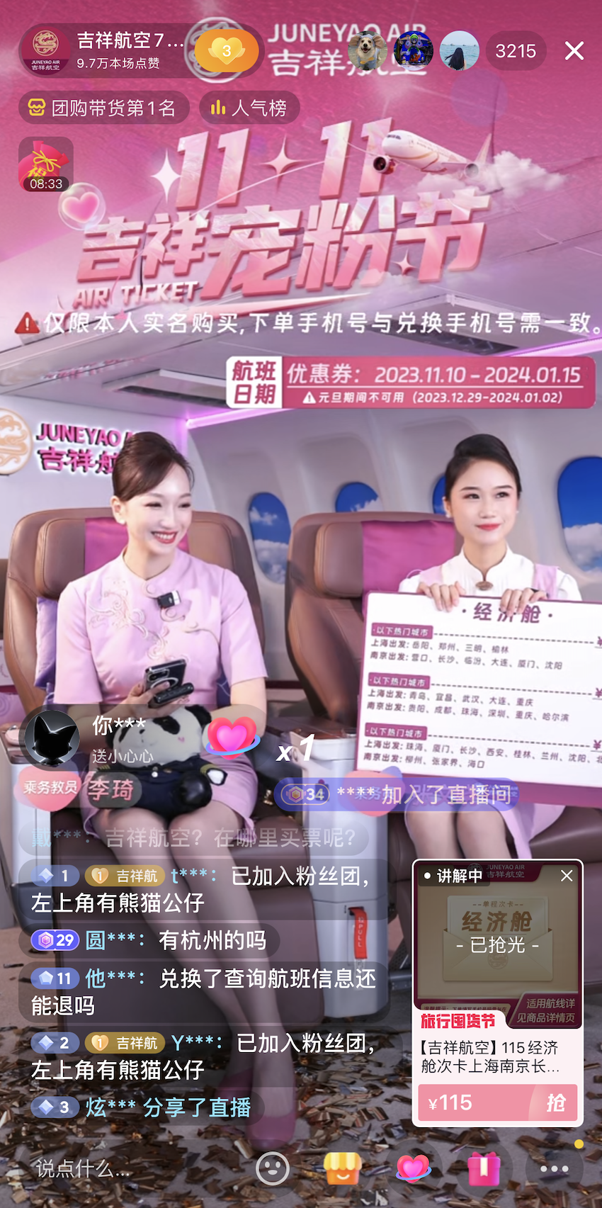 金星、刘畊宏&王婉霏Vivi、李好、赵奕欢、钟丽缇、普陀山小帅等数10位明星、超头部达人带动了21家S+级商户交易支付提升,其中,金星支付GMV破亿;刘畊宏直播间更是超300万人在线云游周庄;赵奕欢抖音直播首秀便实现GMV破千万;李好则是化身机长沉浸式直播,吸引大量用户互动。亮眼的数据足以说明,明星专场直播能为酒旅商家带来实实在在的经营增长。