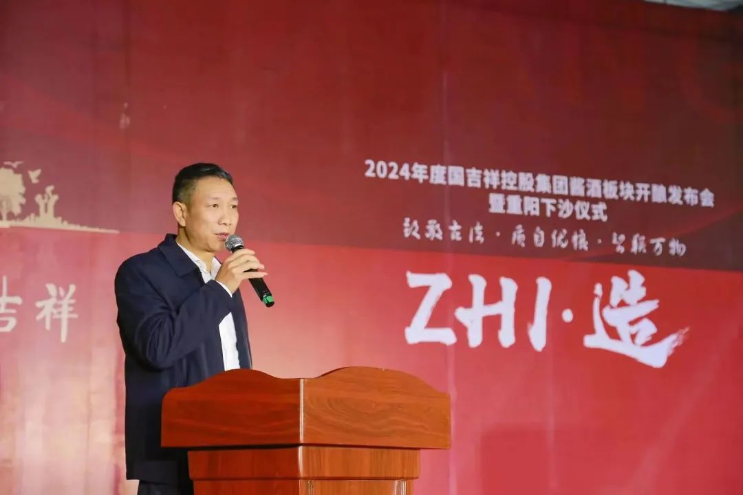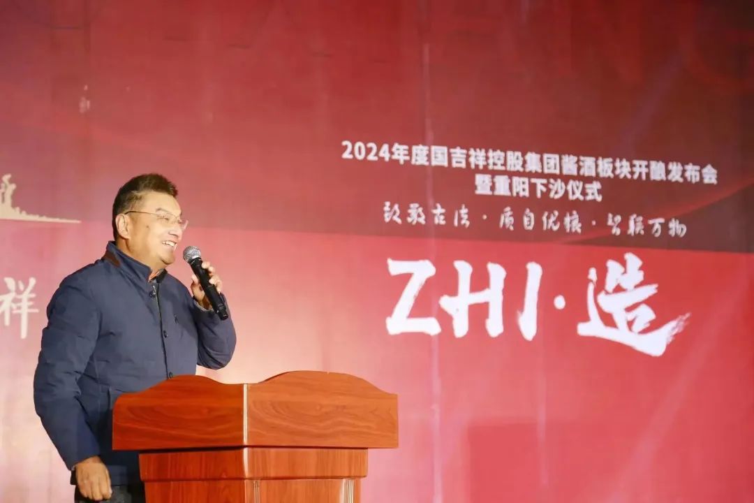2023年11月15日,以“ZHI造——致敬古法 · 质自优粮 · 智联万物”为主题的2024年度国吉祥(控股)集团酱酒板块开酿发布会暨重阳下沙仪式在仁怀市合马镇国吉祥酿酒基地隆重举行。贵州大学农学院原党委副书记王巩,仁怀市合马镇党委副书记陈宗淮,仁怀市合马镇环保站站长张建超,国吉祥(控股)集团董事局主席王运万,董事局副主席兼执行总裁李晓春,黔国集团执行总裁王运邦,国吉祥(控股)集团常务副总裁兼酒业事业部总经理赵玉中,集团副总裁兼营销企划中心总经理杜莎莎,集团副总裁兼酒业事业部副总经理陈磊等领导及各部门员工共200余人出席活动,共同见证了国吉祥新一轮酿造周期的开启。