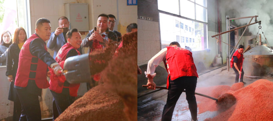 上午10时45分,国吉祥(控股)集团董事局主席王运万、董事局副主席兼执行总裁李晓春作为主祭人奉礼上香、感恩天地、祭拜酒神,表达国吉祥人不忘根本、传承技艺的虔诚之心,祈愿新一轮的酿造风调雨顺。祭祀礼成,国吉祥(控股)集团董事局主席王运万宣布“开酿!”随后,现场领导、嘉宾深入酿酒基地,亲自体验“润粮、拌粮”,并在传统工序里,感受酱酒酿造工艺的考究和细节。