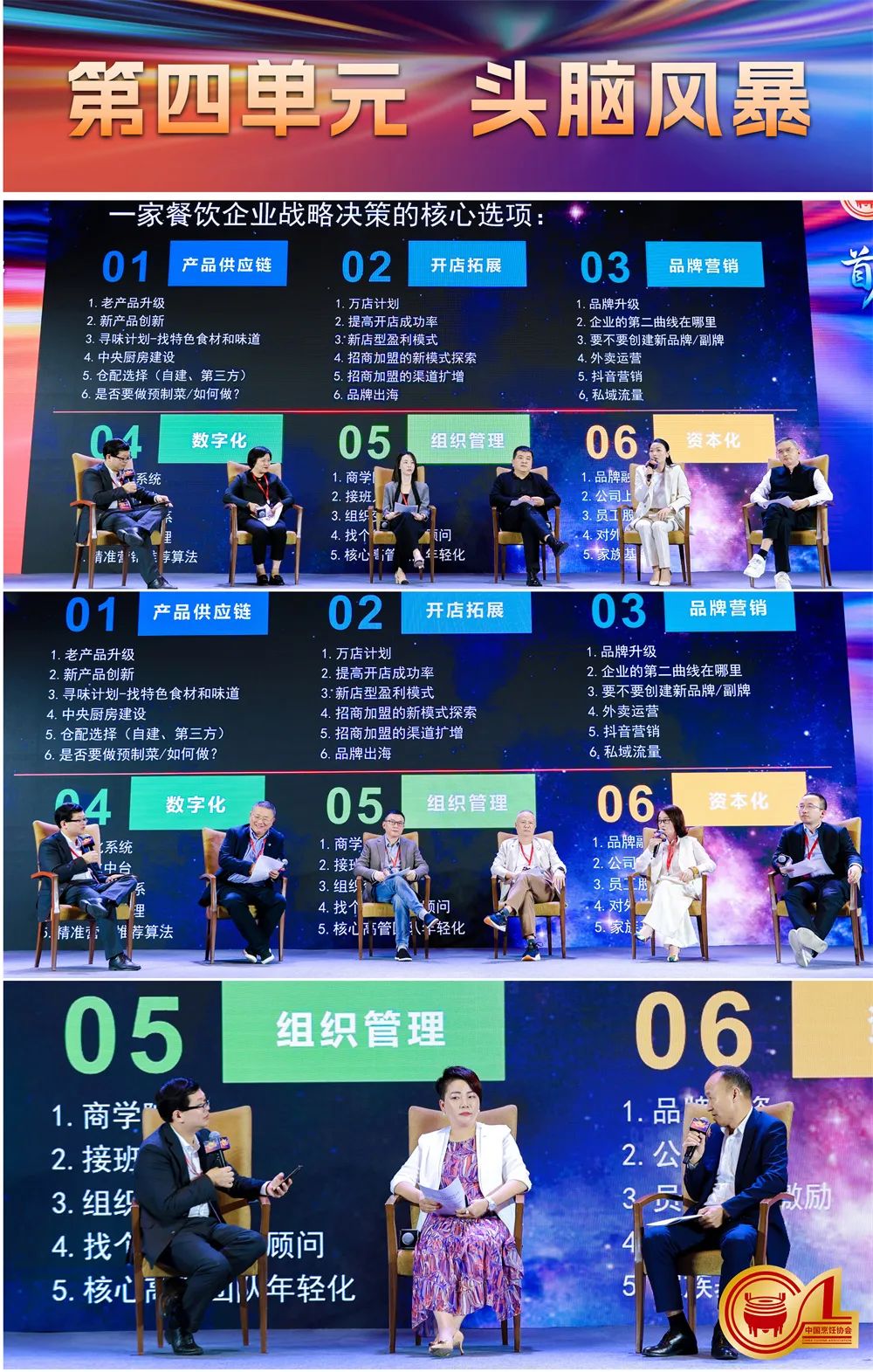 七欣天阮天书、阿五黄河大鲤鱼樊胜武、蛙来哒罗清、霸蛮米粉张天一、朝天门王普、蒙自源李红伟共同就第二单元,“供应链体系建设”展开讨论