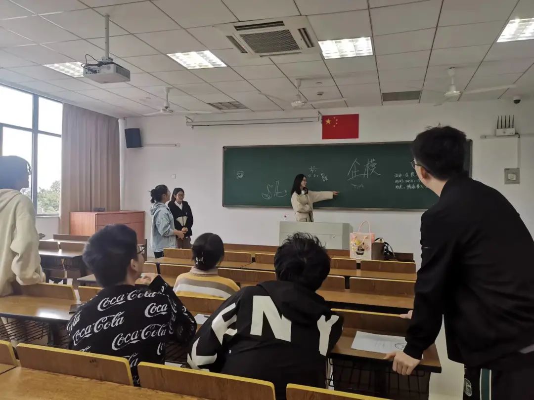 两人组成一组,社员们其中一位随机抽取题目卡后蒙眼在黑板上画出题目上的内容,由队友猜,最先猜对的队伍获胜。通过这个游戏社员们加深了彼此的默契,在欢笑中促进交流。