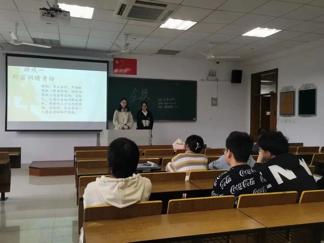 多人合作,甲抽取随机一张身份词,30秒内再纸上写出形容词,交给乙,乙通过身份词猜出身份,并添加三个以内形容词,交给丙,直至最后一人猜出身份即可获胜。这个活动让社员们大胆地发挥自己的想象力与创造力,开拓思维。